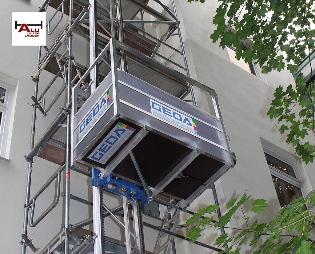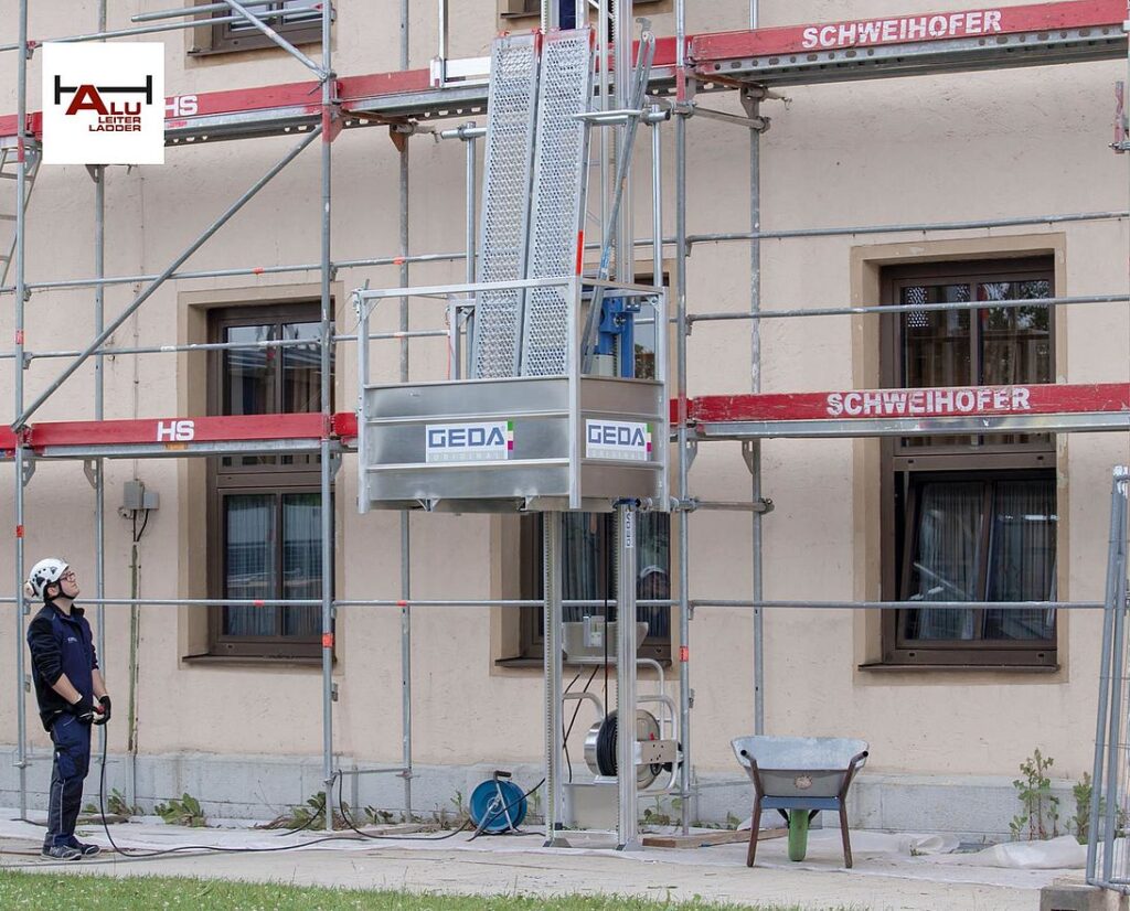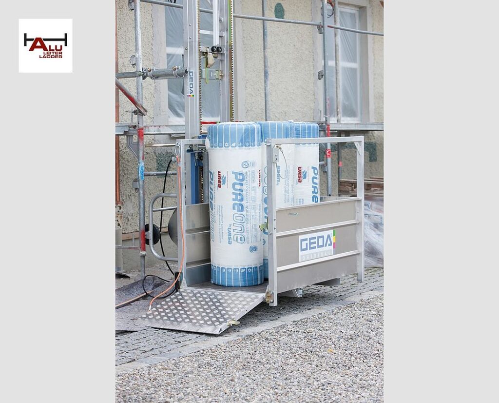GEDA 200 Z on kompaktne ja kerge materjalitõstuk, mis on ideaalne abiline nii tellinguehitajatele kui ka ehitustöölistele. Selle seadme paigaldamine on lihtne ja kiire tänu patenteeritud kiirühendussüsteemile, mis asendab keerulised keermesühendused ning võimaldab seadme kiiret ja vaevatut kokkupanekut. Tõstuki baasseade ja platvorm vajavad maapinnal vaid 1,5 x 1,5 meetrist ala, võimaldades platvormi probleemideta paralleelselt hoonega laadida. Lisaks saab platvormi pöörata 90 kraadi vasakule või paremale, mis lihtsustab materjalide mahalaadimist erinevatel korrustel.