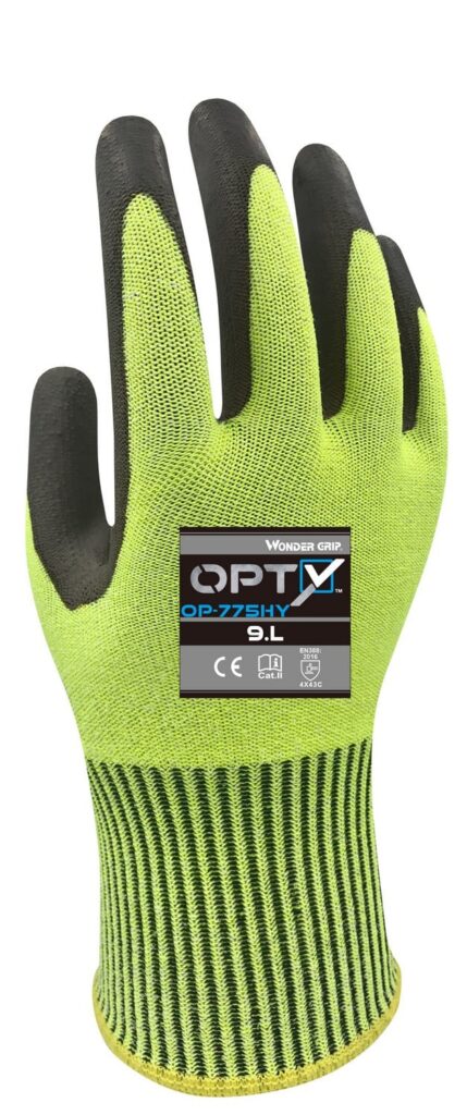 Wonder Grip® Opty™, OP-775HY pakub mugavat sobivust käe kujuga ja kompromissitut kaitset mõõduka lõikeohu eest (ISO 13997 tase C ja ANSI A3). Tänu painduvale lõikevastasele kattele ja Wonder Grip® Xtended Performances XP!™ kattele on OP-775HY hea istuvus ja kindel haare. Ideaalne kuivas keskkonnas töötamiseks. Hingavuse tagab ka õhuringlus kinda tagaküljel.